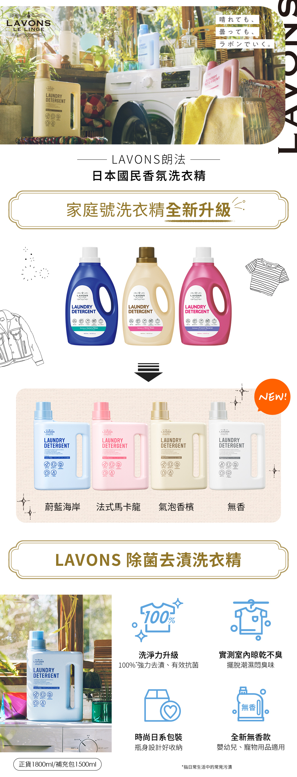 LAVONS 除菌去漬洗衣精 補充包 氣泡香檳 1500ml